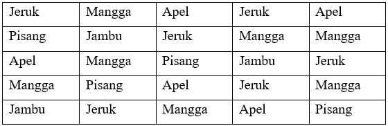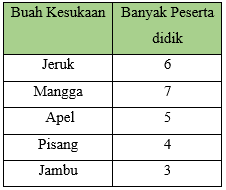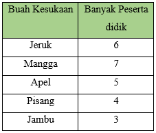 KUIS 2 : PENYAJIAN DATA1. Berikut adalah data buah kesukaan beberapa peserta didik kelas 4.
