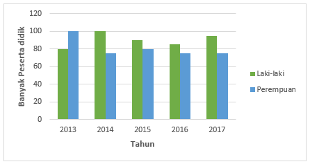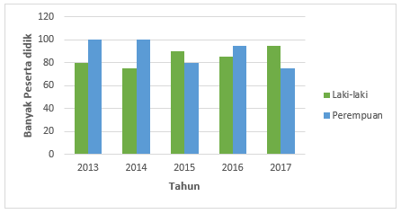 10. Perhatikan data banyak peserta didik di suatu sekolah dasar pada tahun 2013 - 2017 pada tabel berikut!