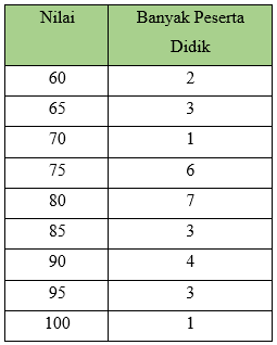 4. Berikut adalah data nilai ulangan harian matematika peserta didik kelas 4.