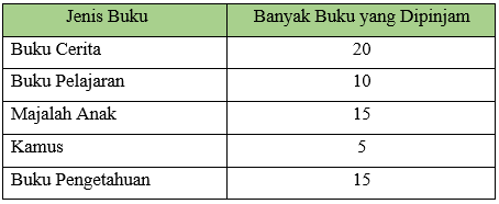 7. Perhatikan data buku yang dipinjam di perpustakaan selama seminggu pada tabel berikut.