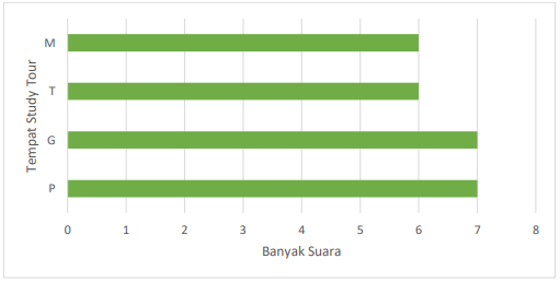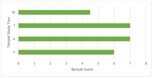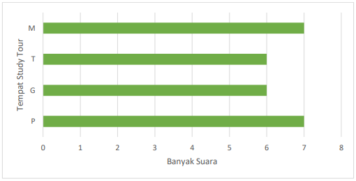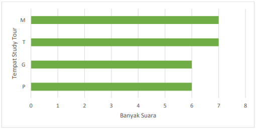 8. Dalam penentuan tempat tujuan study tour, dilakukan voting. Tujuan yang dapat dipilih yaitu pantai (P), gunung (G), taman hiburan (T), dan museum (M). Setelah dilakukan pemungutan suara, diperoleh data sebagai berikut.