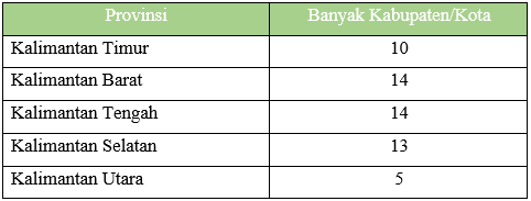 9. Perhatikan data banyak kabupaten/kota di setiap provinsi di Pulau Kalimantan berikut.
